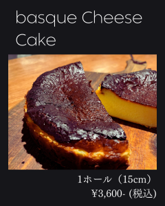 年末年始のおうち向けにバスクチーズのテイクアウト販売を始めます。